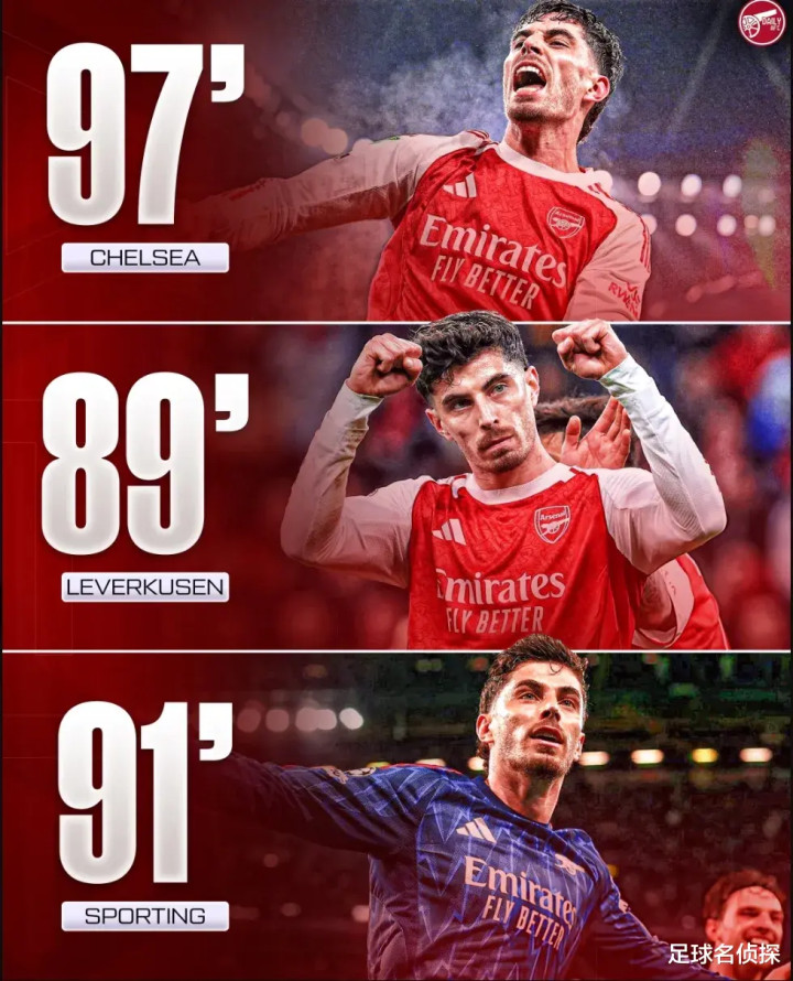 哈弗茨最近代表阿森纳打进的三粒进球,全部是左右比赛结果的绝杀(或绝平):