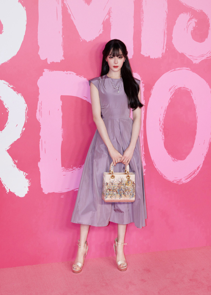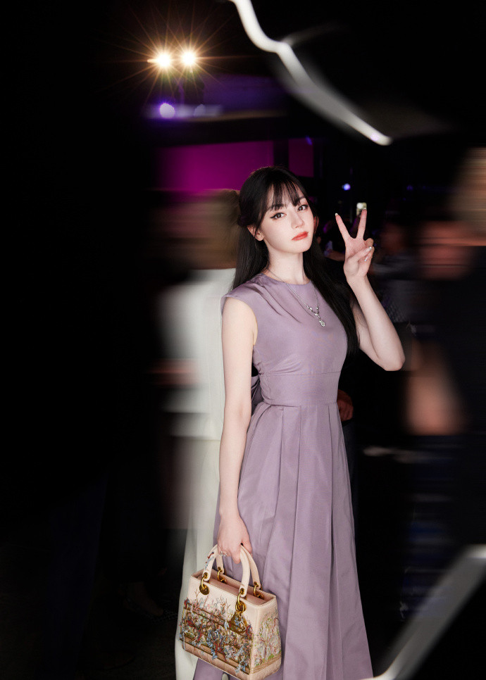 淡紫色缎面长裙,迪丽热巴的这款穿搭是在迪奥的新品发布会上的穿搭。这款穿搭配合迪丽热巴的齐刘海新发型,也在网上形成热议的话题。正如大家热议的那样,新发型给人新鲜感,紫色长裙契合了迪丽热巴的浪漫和温柔,让迪丽热巴又美到了心坎上。