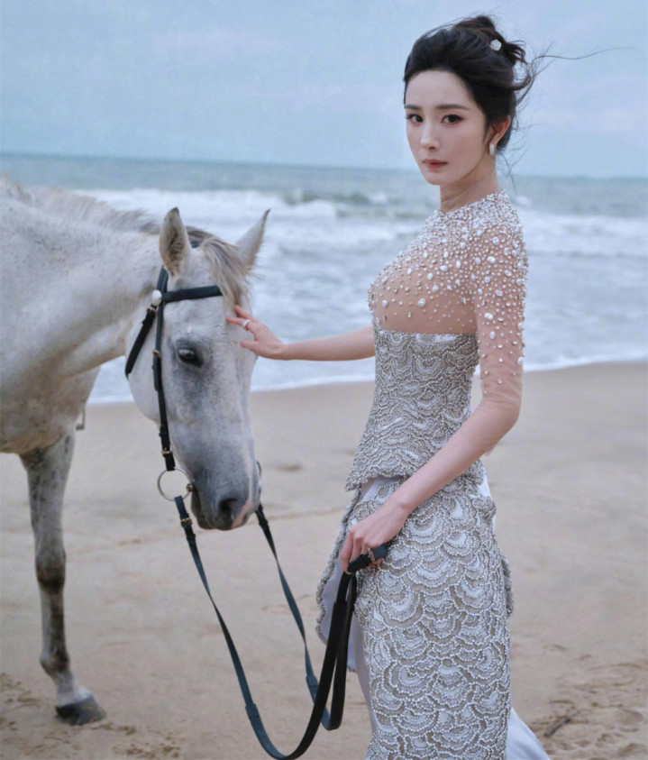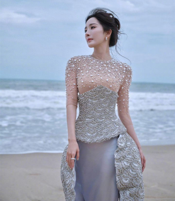 红毯现场的画面更是惊艳:背后是翻涌的湛蓝海水,身前是闪光灯汇成的银河,杨幂站在中间抬手微笑时,裙摆上的珠片随海风折射光线,宛如浪花层层漫过。