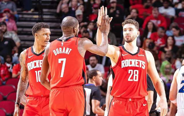 杜兰特的加盟,让火箭队成为了真正成为争冠球队,本赛季比较慢热,开局两连败,斯通的休赛期的操作遭到了质疑。随后10场比赛,拿到了9场胜利,杜兰特展现了自己巨星的实力,本赛季关键球12中8。常规赛不是火箭队的目标,季后赛更进一步才是目的。火箭队排名升至西部第三,但乌度卡在伊森受伤之后,只用了8人轮换,埋下隐患。