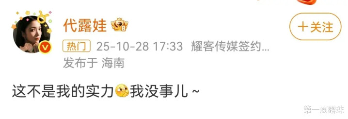 有粉丝说她两年前摔过一次,落下了髋关节积液的旧伤,这次一摔,大家都担心她旧伤复发。可她事后就发了条微博轻描淡写带过:“这不是我的实力,我没事儿~”。