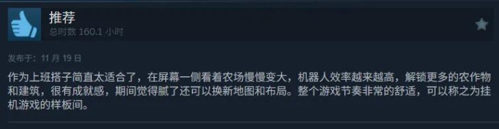 它的口碑也非常好,Steam上近1.4万条评论给出96%的好评率,评论区清一色的好评,夸赞游戏是最好的「上班搭子」「摸鱼小能手」,哪怕游戏有一定的瑕疵,也不妨碍玩家的夸夸。