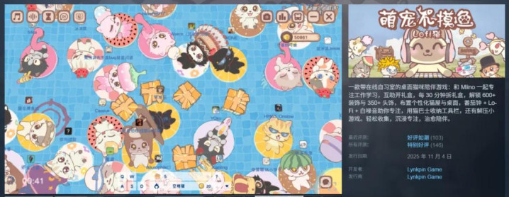开头提到的《猫猫钓游记》就属于第一个分支,制作一个Q萌的猫猫钓鱼场景,配合大量的鱼类图鉴和出货条件、一定的升级路线,就能构建一个非常杀时间的桌面放置玩法。