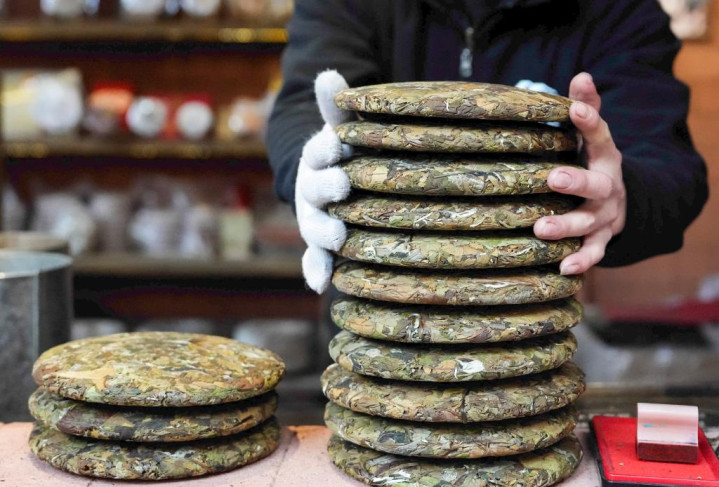 这是1月14日在那柯里村拍摄的普洱茶饼。新华社记者陈欣波摄